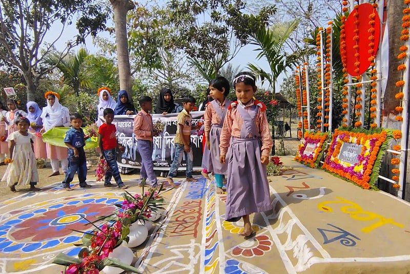 নিজেদের বানানো শহীদ মিনারে ভাষাশহীদদের প্রতি শ্রদ্ধা
