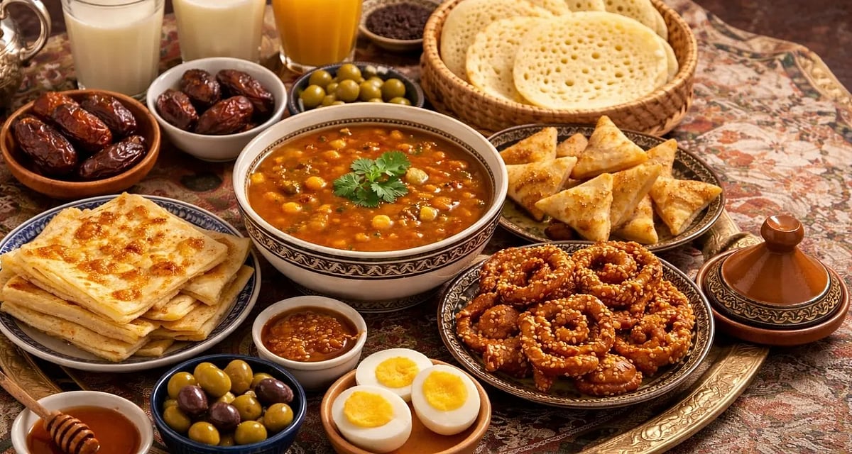 মরক্কোর ইফতার দস্তরখান অত্যন্ত জাঁকজমকপূর্ণ। হারিরা ও শুবাকিয়ার পাশাপাশি সেখানে থাকে: