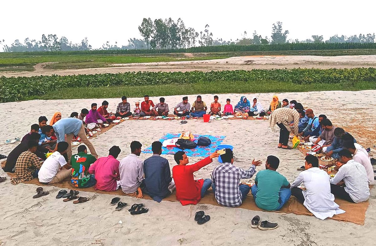 হরিণচওড়া মাঝের চরে রংপুর বন্ধুসভার ইফতার